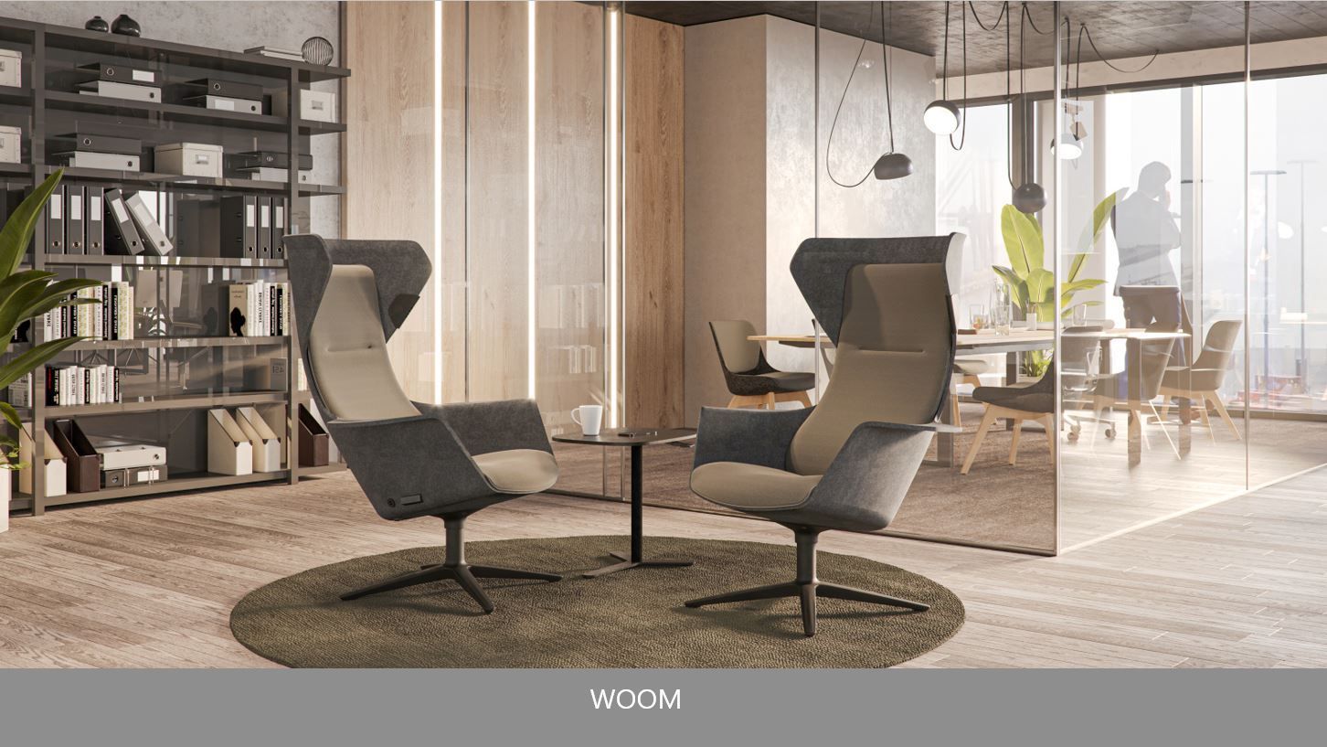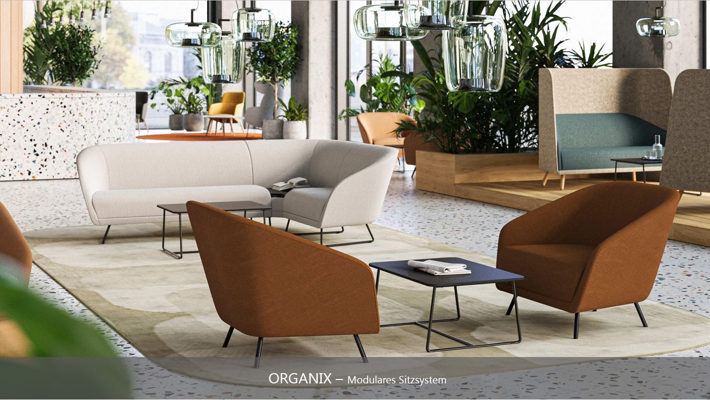 Loungemöbel schaffen Räume für konzentriertes Arbeiten und Kommunikation und setzen auf stilvolle und akustisch wirksame Einrichtungslösungen.